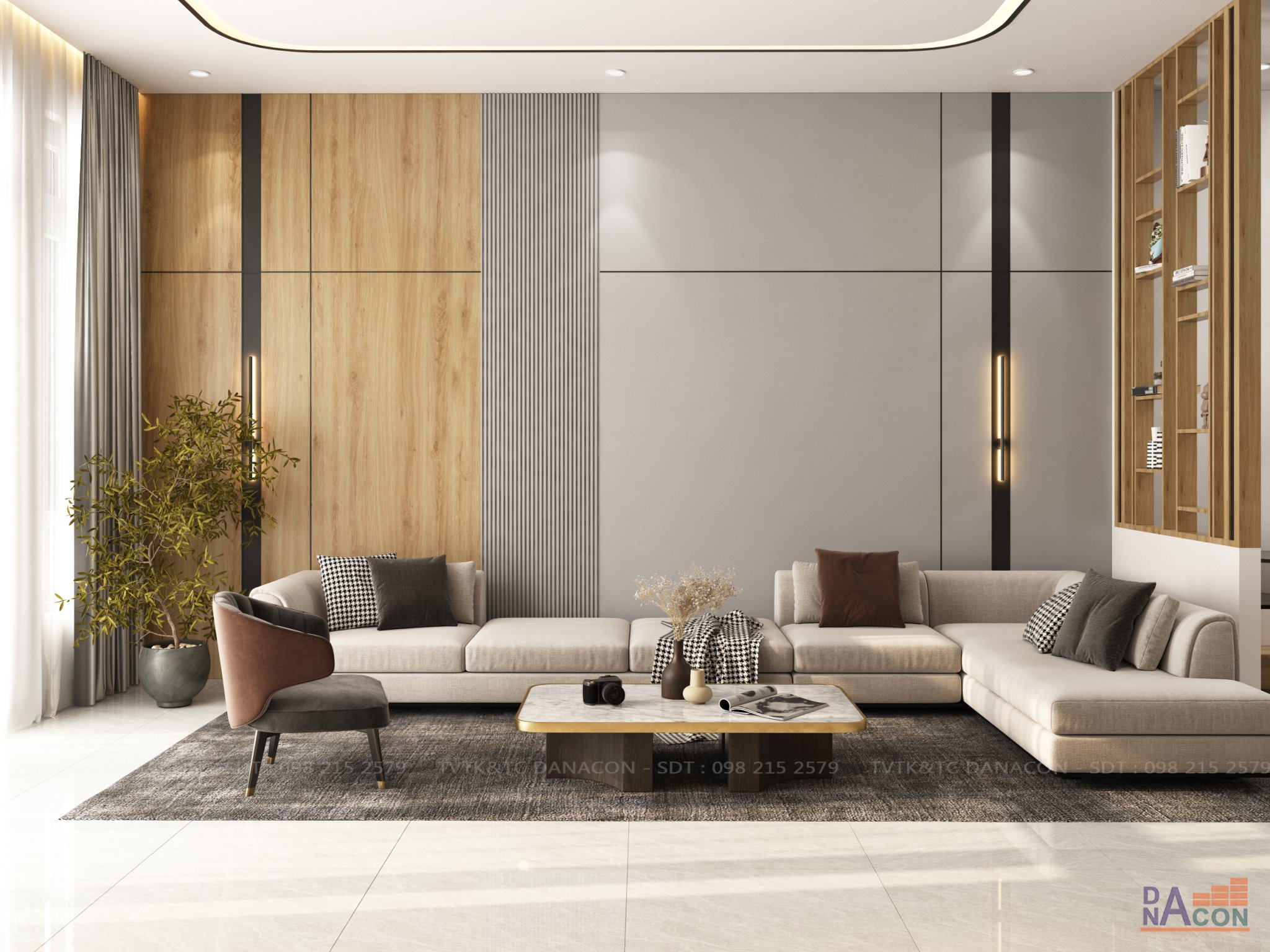 Phòng khách hiện đại thường sử dụng sofa đơn giản, bàn trà gọn nhẹ và hệ thống kệ tivi tinh tế. Tông màu trung tính kết hợp với ánh sáng tự nhiên giúp tạo nên không gian ấm cúng và thoải mái.