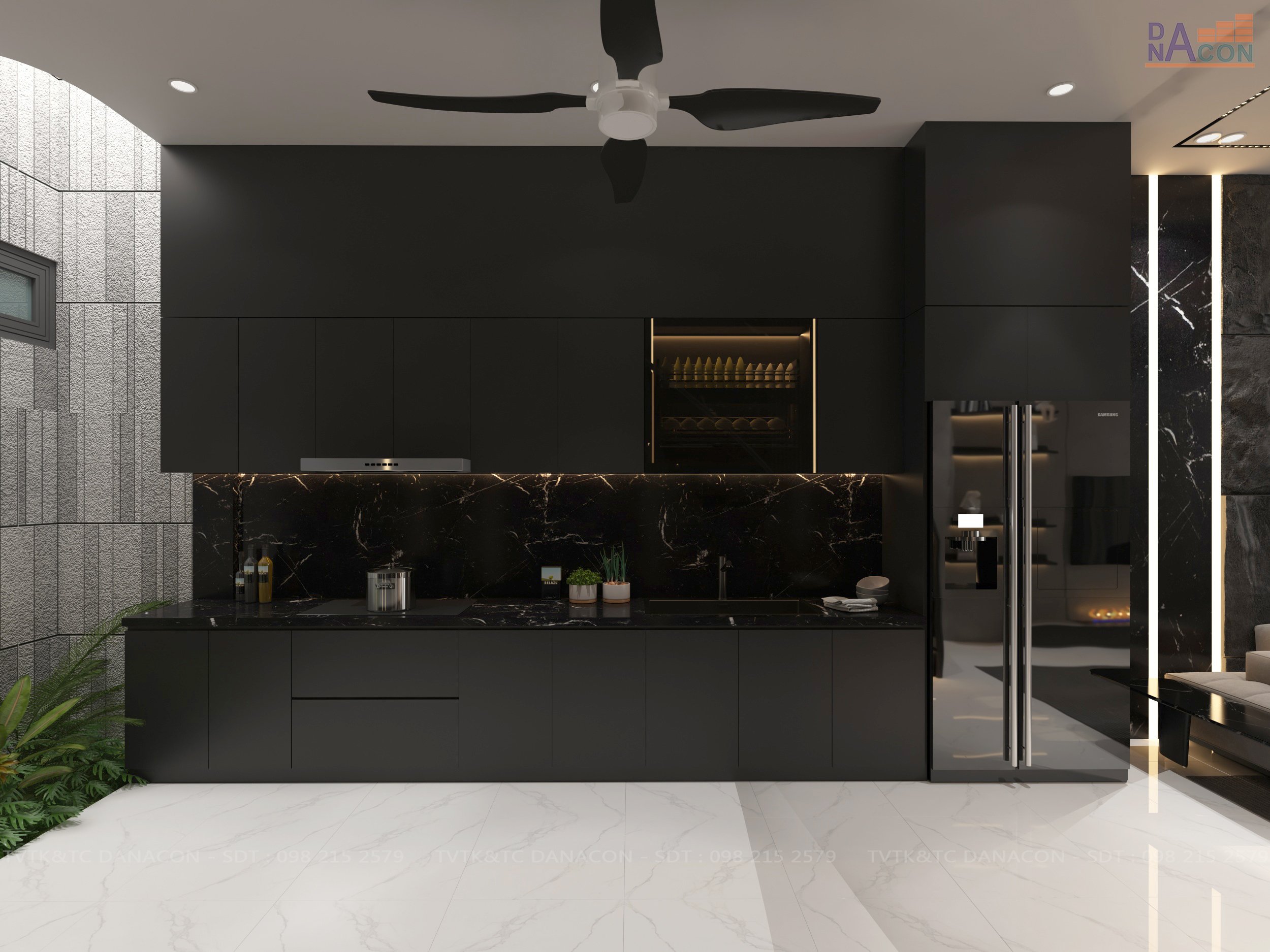 Phòng bếp hiện đại ưu tiên các thiết bị bếp thông minh, hệ tủ kệ tiện dụng và bề mặt làm việc rộng rãi. Sử dụng tông màu trắng và kim loại để tạo cảm giác sạch sẽ và hiện đại.